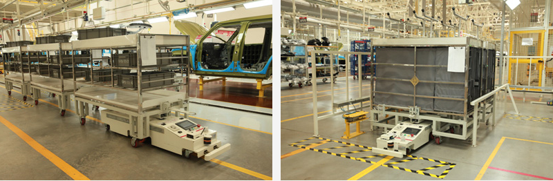 Beiqi (Zhenjiang) Automobile Co., Ltd. belongs to BAIC Group, which mainly produces medium and high-end SUVs and core components. The AGV project is used for the distribution of interior and doorline materials in the assembly shop. The delivery method adopts the SPS supply mode, and the line edge is automatically connected. The line system transports the materials to the correct location at the correct time in the correct amount to achieve unmanned distribution and meet the 40JPH beat of the production line. AGV adopts the track navigation system and realizes unmanned automatic transportation through the instant communication of the control system with other management systems. It is the choice for the automotive industry to enhance the competitiveness of the industry, reduce labor costs and improve the efficiency of warehouse allocation.