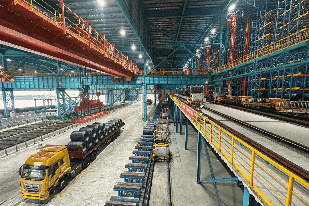 鋼鐵行業成品線材智能物流解決方案實現了盤卷從生產下線、入庫、存放、出庫裝車等物流及信息流的全程自動化管理。